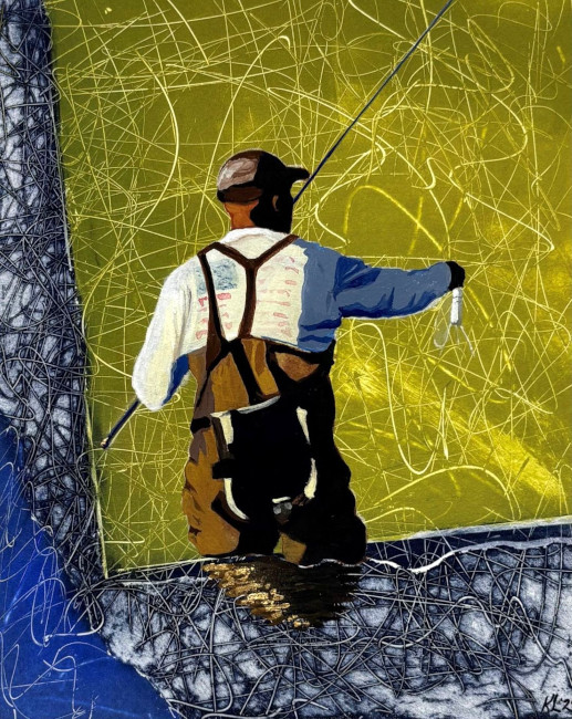 Acrylagouache and gold leaf on Etching 8" x 10"